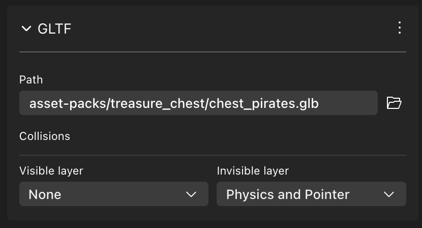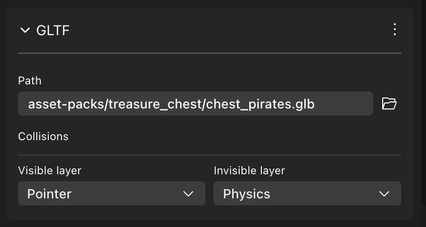 You can also configure the collision layers on a GLTF component to change the default Collision layers used on either the collider geometry or the visible geometry of the model. See Add Components .
